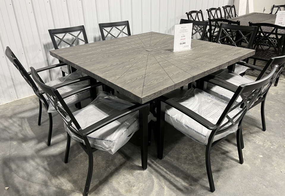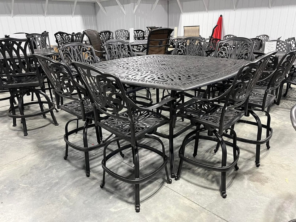 Family-tested, rust-resistant, and ready for nearly anything Mother Nature dishes out…except when trees fall on them…Mother Nature does win sometimes! Our cast aluminum furniture sets aren't just sturdy – they're the perfect spots for making memories, from casual BBQs to those long summer dinners that nobody wants to end. Whether you're hosting 6 or 12, we've got your perfect excuse to linger outside just a little longer.